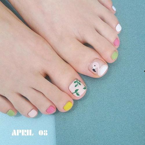 除了色彩斑斓,脚趾甲美甲的图案也是一大亮点。不同的图案,展现不同的个性魅力。
